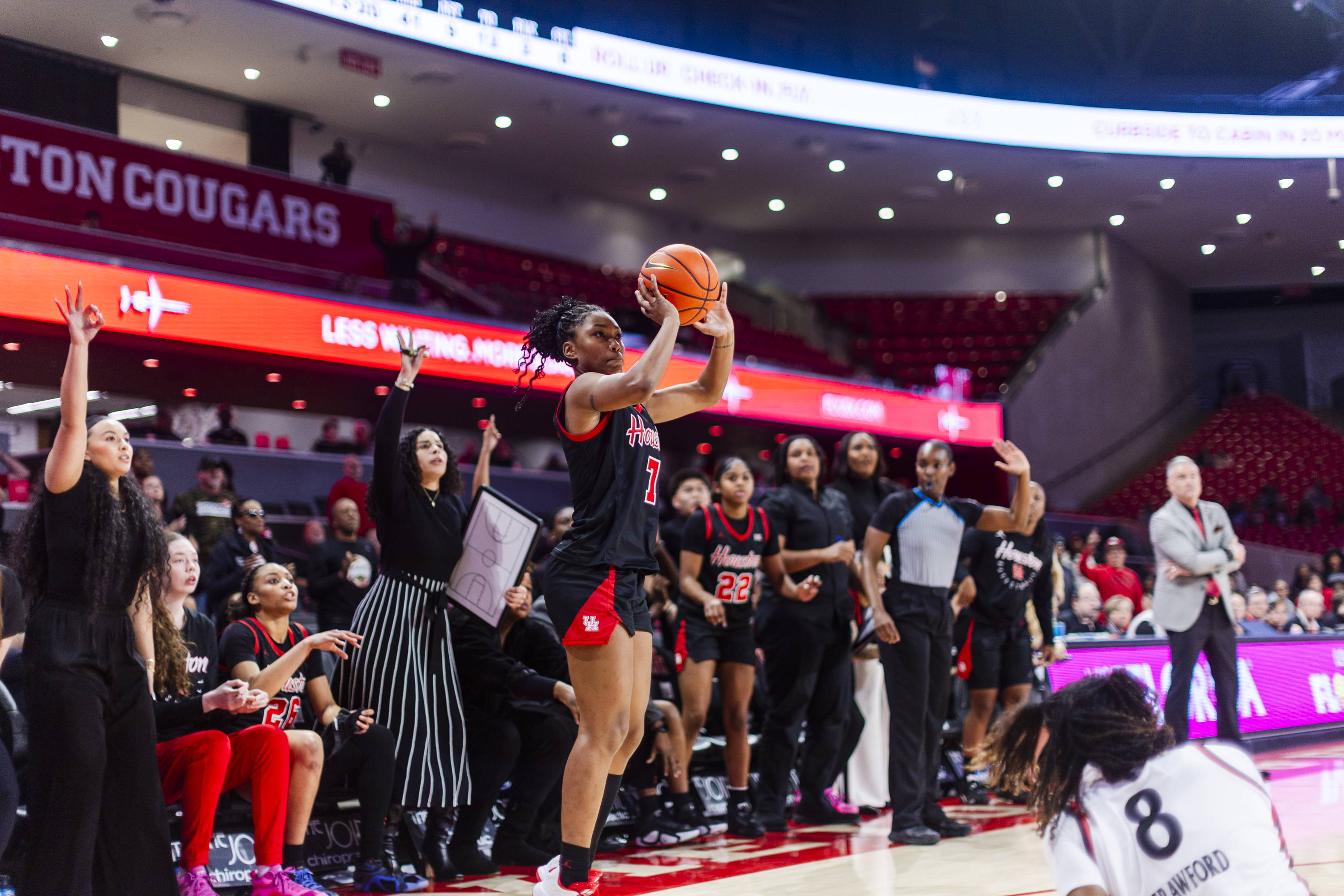 After the match, an elated coach Matthew Mitchell grabbed a microphone and led a “Whose House? Coogs House!” chant, showcasing how much the win meant for the team.